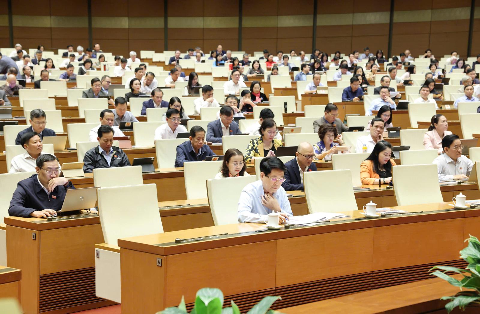 Các đại biểu Quốc hội nghe tờ trình, báo cáo thẩm tra dự án sân bay Gia Bình. Ảnh: P.Thắng