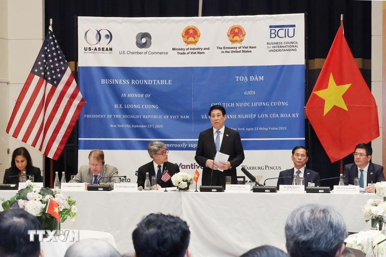 Trong khuôn khổ chương trình tham dự Phiên thảo luận chung cấp cao Đại hội đồng Liên hợp quốc khóa 80, kết hợp hoạt động song phương tại Hoa Kỳ, sáng 23/9 tại New York, Chủ tịch nước Lương Cường đã dự buổi tọa đàm với các doanh nghiệp Hoa Kỳ do Hội đồng doanh nghiệp thúc đẩy quan hệ quốc tế (BCIU) phối hợp với Phòng Thương mại Hoa Kỳ (USCC), đại diện Hội đồng kinh doanh Hoa Kỳ-ASEAN (USABC) đồng tổ chức.