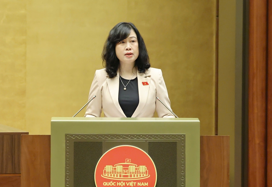 Bộ trưởng Bộ Y tế Đào Hồng Lan trình bày tờ trình về chương trình mục tiêu quốc gia về chăm sóc sức khỏe, dân số và phát triển. Ảnh: TRỌNG HẢI |