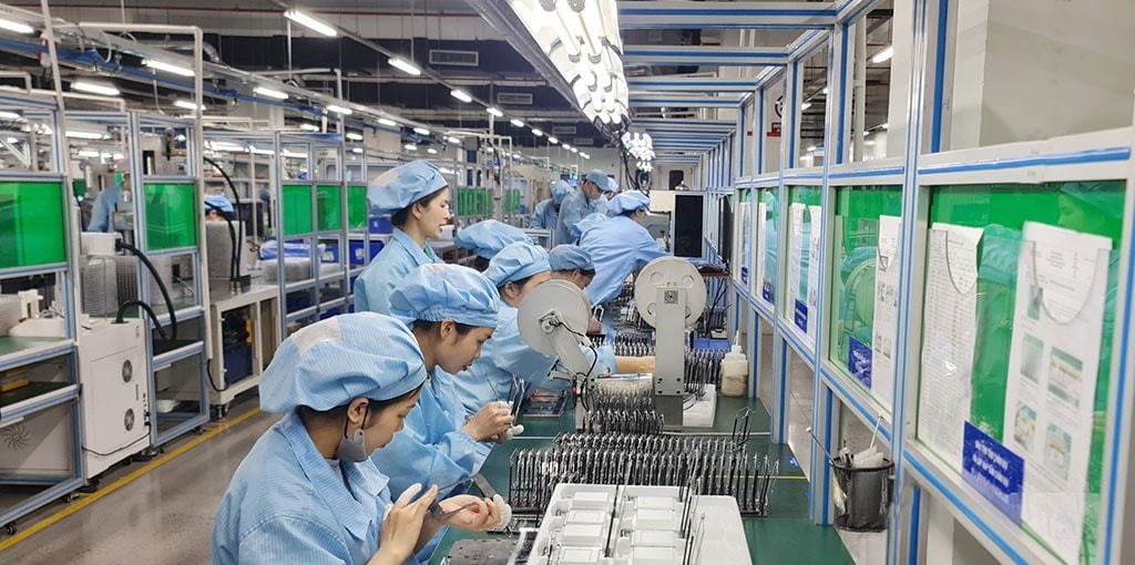 Sản xuất chân ram và thiết bị kết nối máy tính tại Công ty TNHH Lotes Việt Nam, khu công nghiệp Liên Hà Thái. Ảnh: Hà Thanh