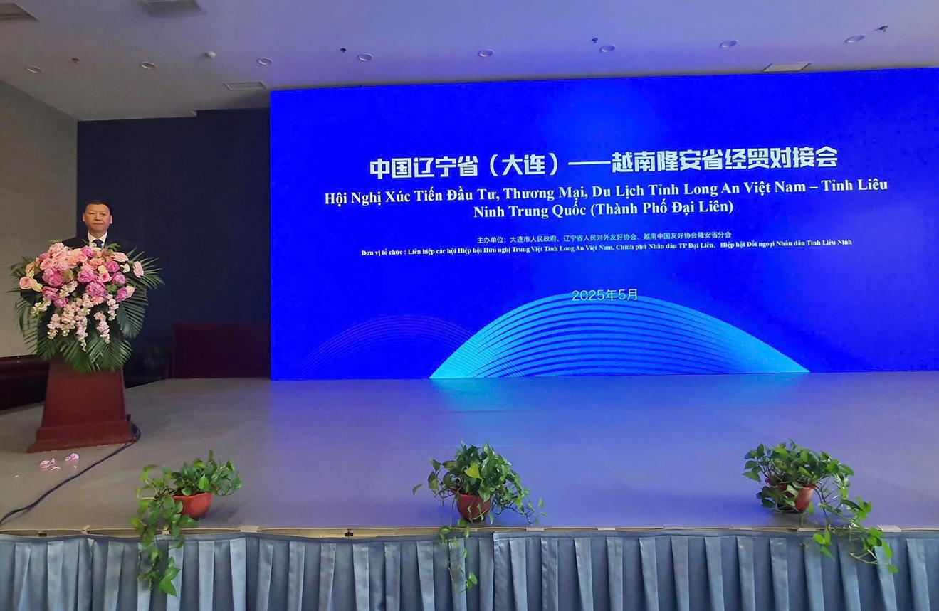 Trong khuôn khổ chuyến công tác tại Trung Quốc, Đoàn công tác hữu nghị tỉnh Long An đã tham dự Hội nghị Xúc tiến Đầu tư, Thương mại và Du lịch tỉnh Long An, Việt Nam - tỉnh Liêu Ninh, Trung Quốc, tổ chức tại thành phố Đại Liên, tỉnh Liêu Ninh.