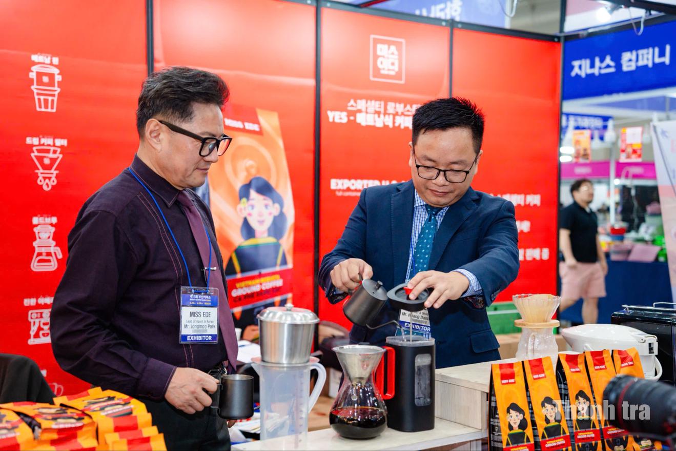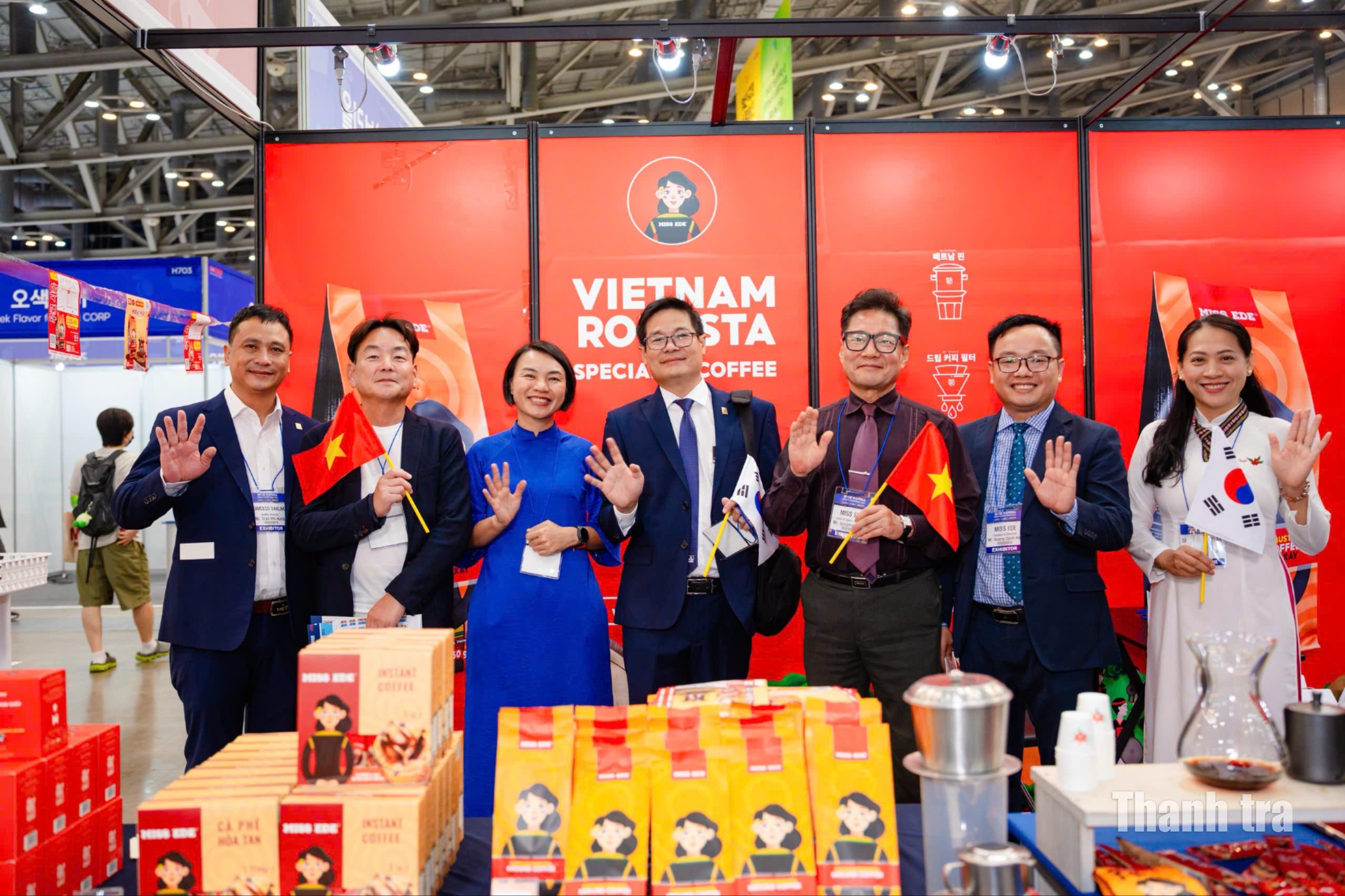 Các doanh nghiệp cà phê tại Buôn Ma Thuột quảng bá cà phê Vietnam Robusta tại Triển lãm Busan Coffee Show tháng 6/2025. Ảnh: ME
