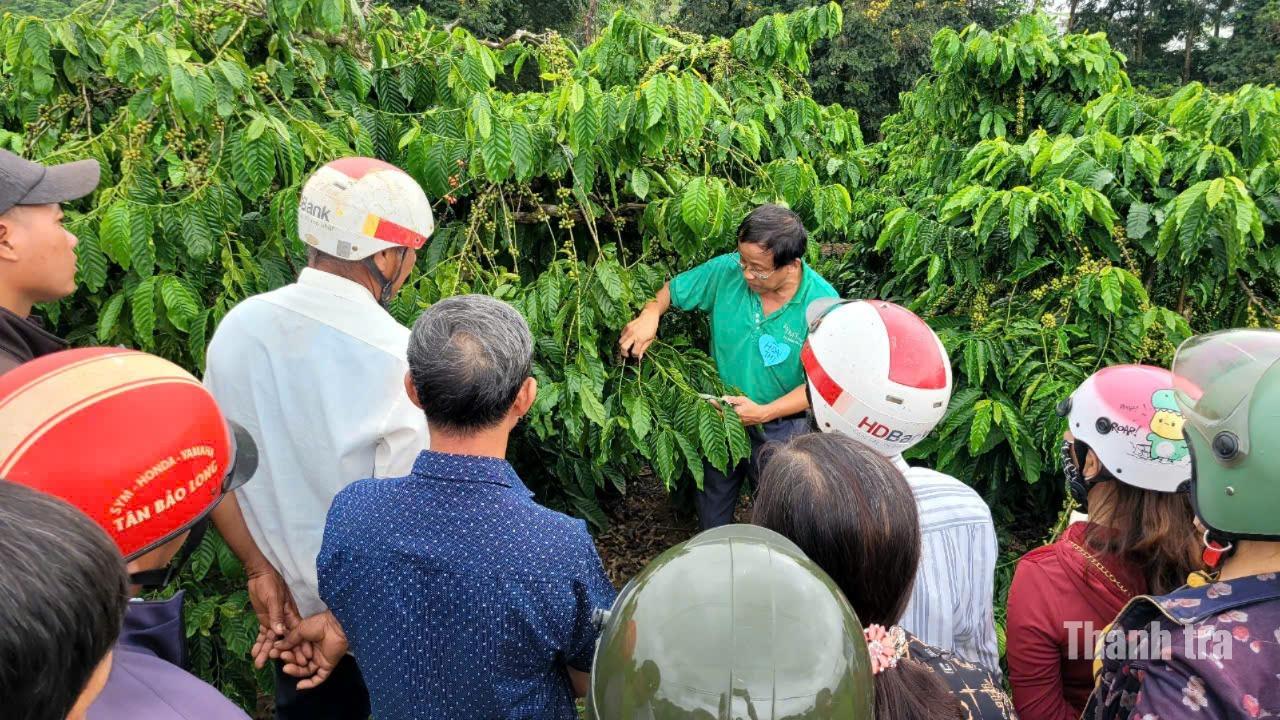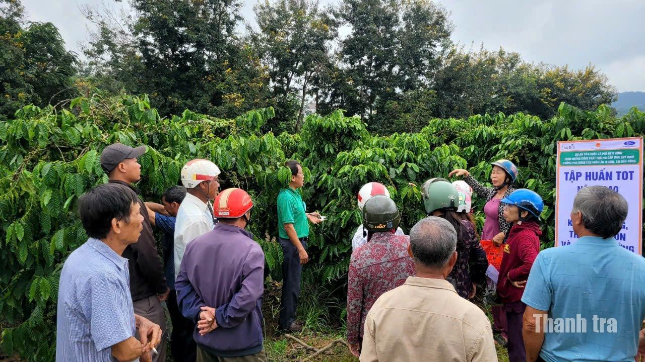 Các chuyên gia từ Công ty Cổ phần TMTconsulting đang hướng dẫn người dân trồng cà phê áp dụng quy trình canh tác bền vững, giúp nâng cao năng suất, chất lượng và thích ứng với biến đổi khí hậu. Ảnh: TMT