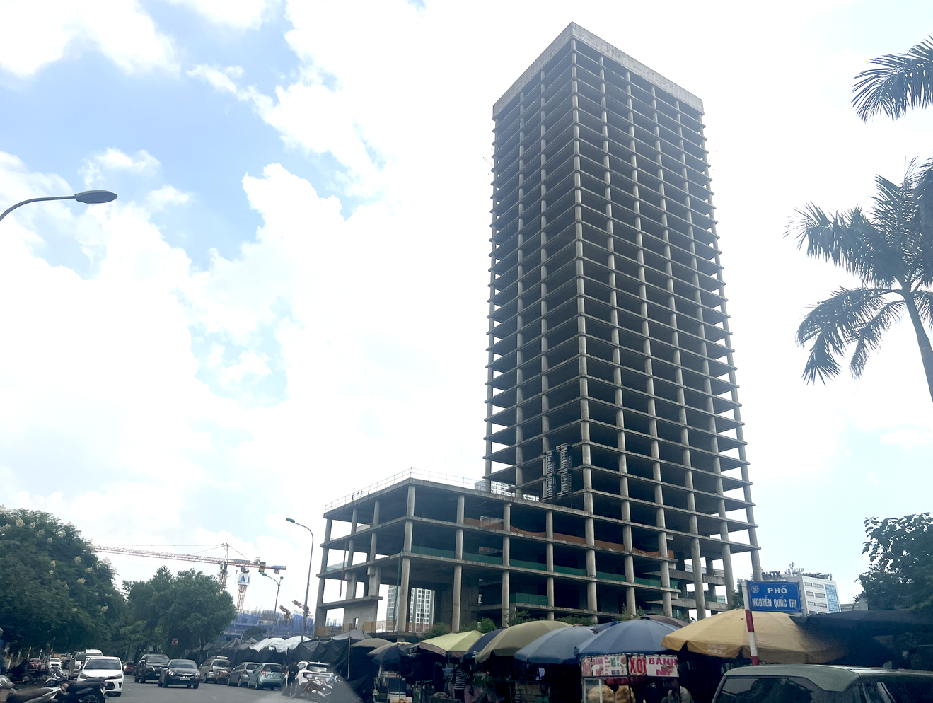 Sau hơn 14 năm khởi công với mức đầu tư hàng ngàn tỉ đồng, tòa nhà của Vicem vẫn chỉ là khối bê tông gây lãng phí tài sản Nhà nước. Nhiều nguyên lãnh đạo, cán bộ thuộc Vicem bị khởi tố về tội "Vi phạm quy định về quản lý, sử dụng tài sản Nhà nước gây thất thoát, lãng phí" liên quan đến dự án này. Ảnh: PV