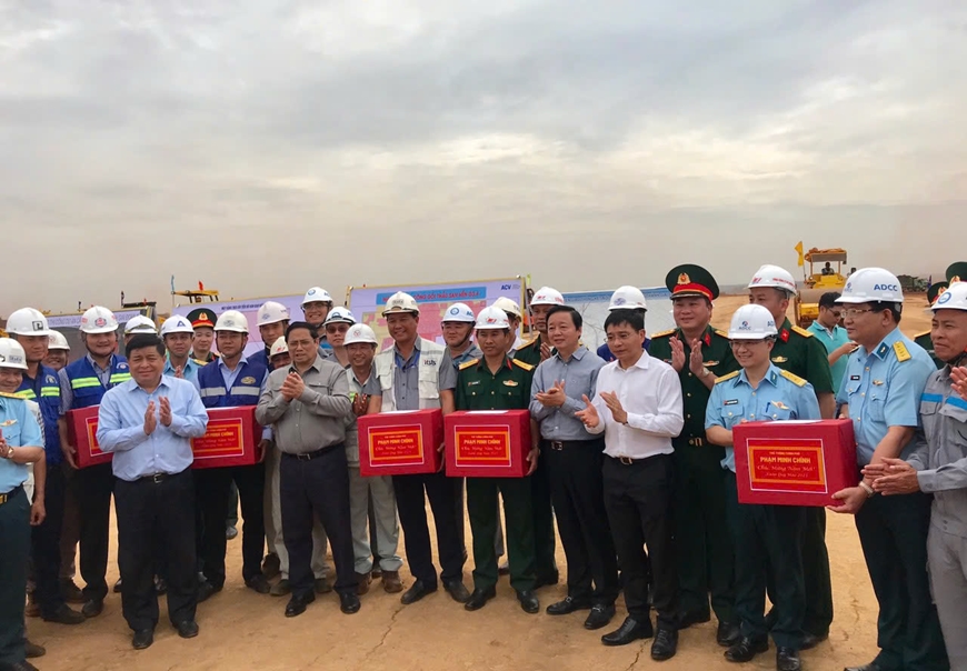 | Thủ tướng Phạm Minh Chính kiểm tra, động viên cán bộ, nhân viên Công ty ADCC và các đơn vị tham gia dự án Cảng hàng không Quốc tế Long Thành. Ảnh do Công ty ADCC cung cấp |