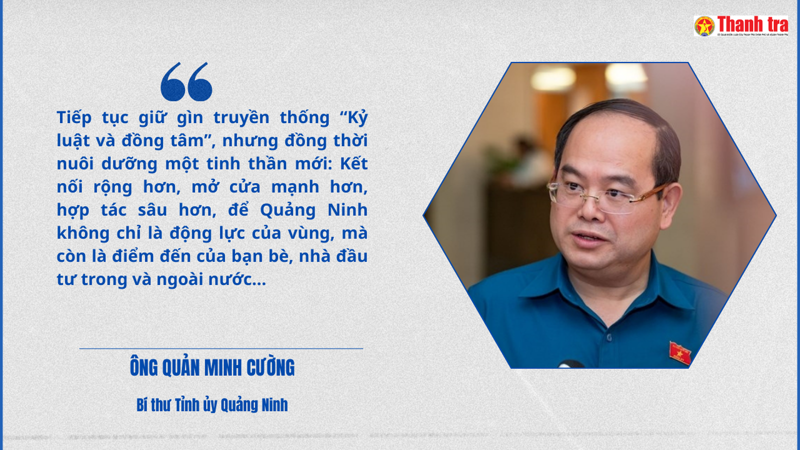Tinh thần "kỷ luật và đồng tâm", giá trị cốt lõi của vùng mỏ, tiếp tục được giữ gìn, nhưng được làm mới bằng một tư duy cởi mở hơn, hướng tới kết nối rộng hơn, mở cửa mạnh hơn và hợp tác sâu hơn. Mục tiêu cuối cùng là để Quảng Ninh không chỉ giữ vai trò động lực của vùng Đông Bắc, mà còn trở thành điểm đến hấp dẫn của các nhà đầu tư và đối tác trong và ngoài nước, đồng hành cùng cả nước trong kỷ nguyên vươn mình mới.
