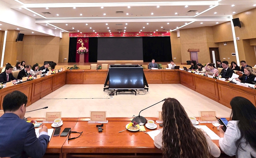 Quang cảnh cuộc tiếp của lãnh đạo Bộ Xây dựng và đoàn doanh nghiệp thuộc Hội đồng Kinh doanh Hoa Kỳ - ASEAN (USABC). |