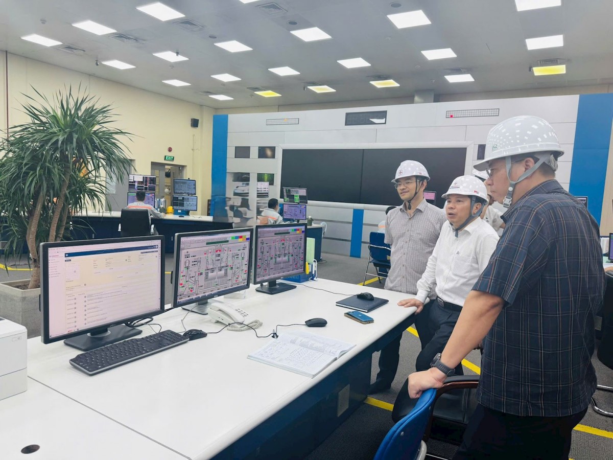 | Đoàn công tác kiểm tra công tác vận hành tại Nhà điều khiển trung tâm tổ máy 300 MW của Công ty Nhiệt điện Uông Bí. |