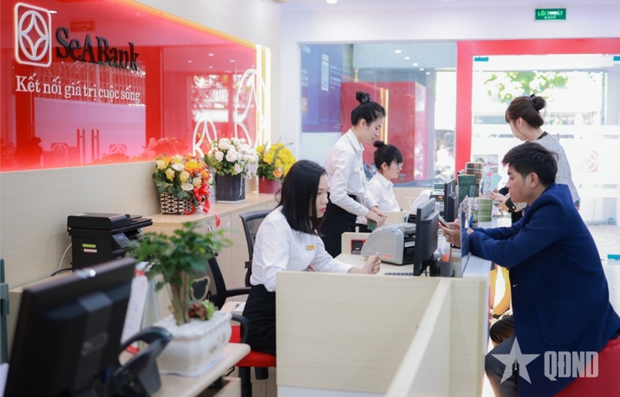 | Khách hàng giao dịch tại Ngân hàng Thương mại Cổ phần Đông Nam Á (SeABank). Ảnh: PHAN THU |