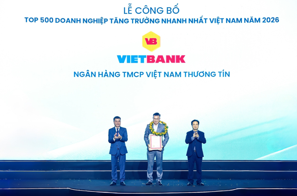 Ngày 22/4/2026, tại TP.HCM, Ngân hàng TMCP Việt Nam Thương Tín (Vietbank) đã vinh dự được xướng tên tại hai bảng xếp hạng uy tín gồm FAST500 (Top 500 Doanh nghiệp tăng trưởng nhanh nhất Việt Nam) và Top 50 Doanh nghiệp tăng trưởng xuất sắc. Sự kiện nằm trong khuôn khổ lễ công bố do Vietnam Report phối hợp cùng báo VietnamNet tổ chức.