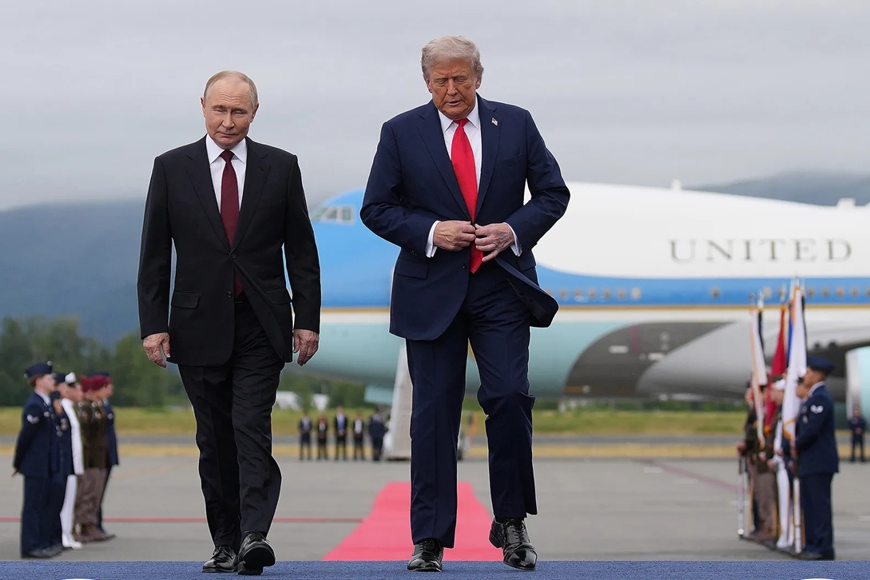 Tổng thống Mỹ Donald Trump đón Tổng thống Nga Vladimir Putin tới hội đàm tại Alaska (Mỹ), ngày 15-8-2025. Ảnh: Getty Images