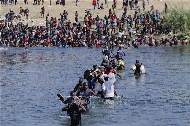 | Người di cư di băng qua sông Rio Bravo từ Mexico sang Mỹ. |