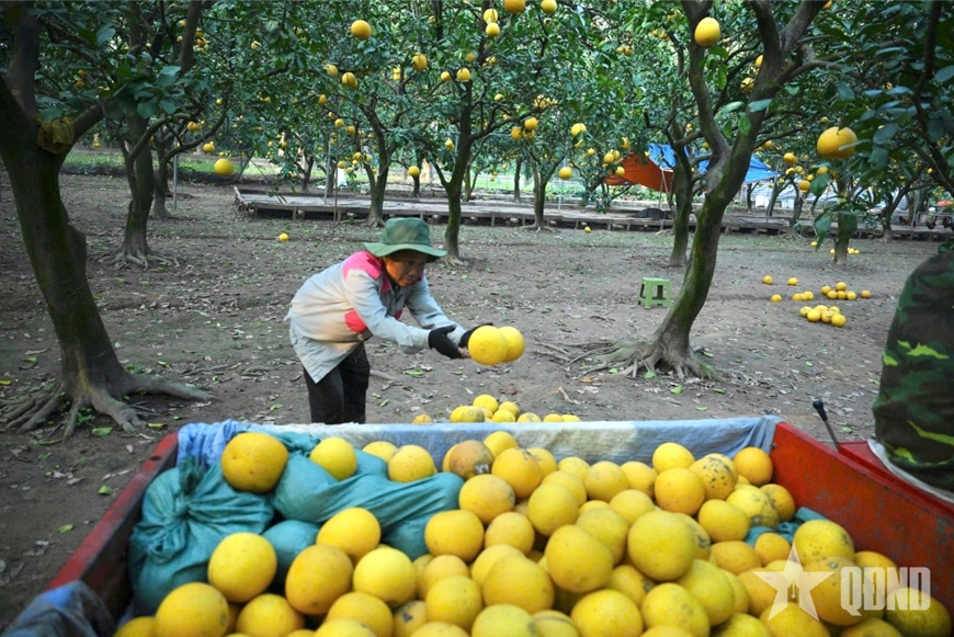 Năm 2025, thiên tai khắc nghiệt đã khiến sản lượng bưởi Diễn của Hà Nội sụt giảm đáng kể. Tuy nhiên, các nhà vườn lâu năm trên địa bàn phường Tây Tựu (TP Hà Nội) đã khắc phục khó khăn để kịp cho ra trái ngọt phục vụ dịp Tết Nguyên đán Bính Ngọ 2026. Theo ông Nguyễn Gia Dũng, chủ vườn bưởi Dũng Thu, dịp Tết năm nay, gia đình thu hoạch hơn 100.000 quả bưởi Diễn để cung ứng cho thị trường. Giá mỗi quả bưởi Diễn đúng gốc ở mức 40.000 đồng.