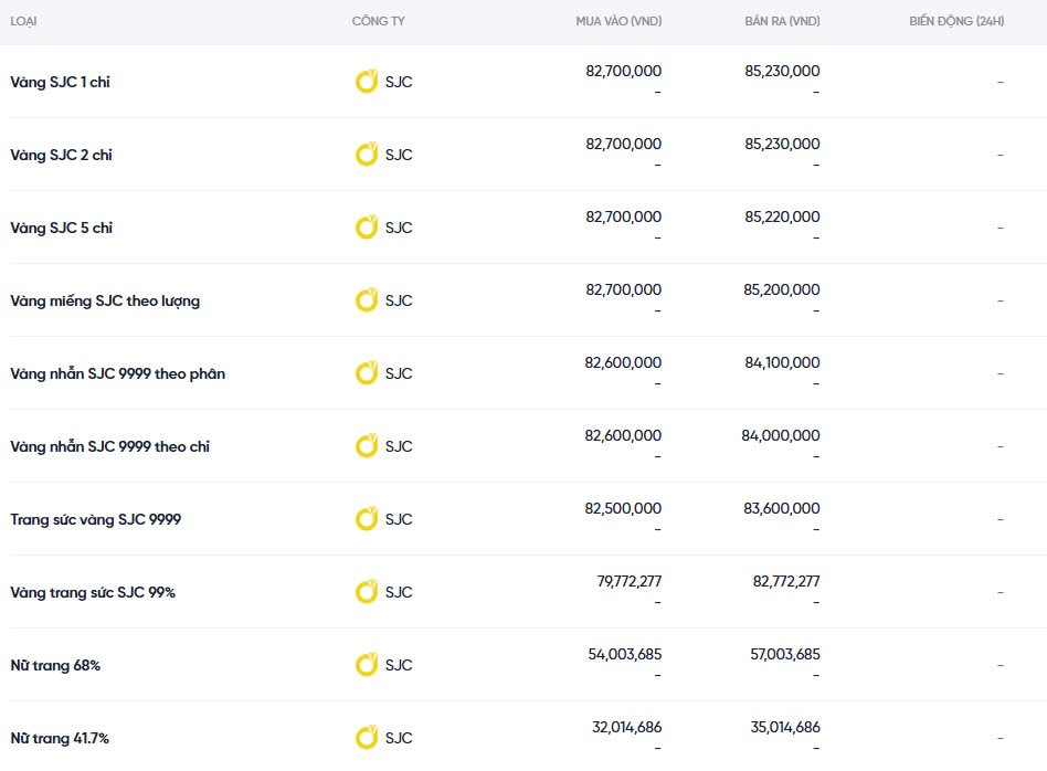 Hà Nội - SJC82.70085.200
