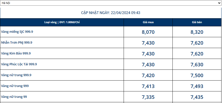 Thông tin mới nhất từ Ngân hàng Nhà nước Việt Nam vào sáng nay, do không có đủ số lượng thành viên đăng ký dự thầu vàng miếng SJC và chuyển tiền đặt cọc đúng quy định nên Ngân hàng Nhà nước đã hủy thông báo phiên đấu thầu vàng miếng SJC ngày thứ Hai ngày 22/4/2024.