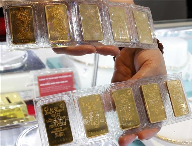 Giá vàng hôm nay (trưa 13-4): Vàng SJC giảm gần 1 triệu đồng/lượng. Ảnh minh họa: TTXVN |