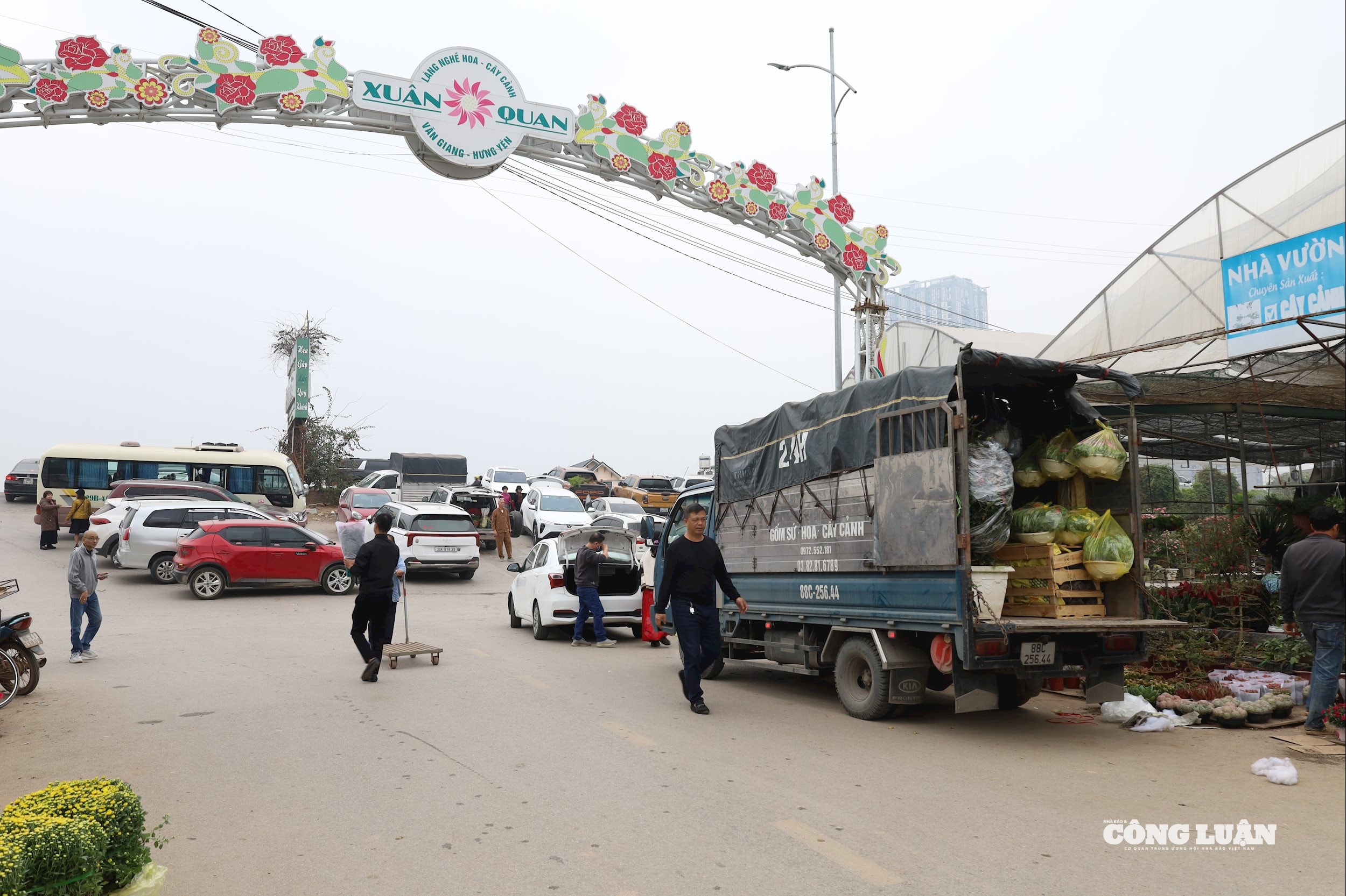Ghi nhận của phóng viên, những ngày này, từ sáng sớm đến chiều muộn, người dân và thương lái từ nhiều địa phương đổ về làng hoa Xuân Quan (Văn Giang, Hưng Yên) để chọn mua cây cảnh phục vụ thị trường Tết. Lượng người và phương tiện tăng cao khiến nhiều tuyến đường trong khu vực thường xuyên xảy ra ùn tắc, các vườn hoa luôn trong tình trạng nhộn nhịp.