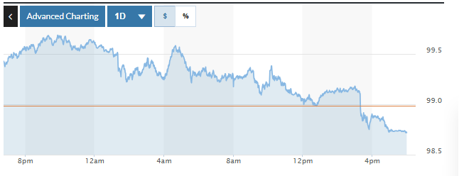 | Biểu đồ biến động Chỉ số DXY trong 24 giờ qua. Ảnh: Market watch |