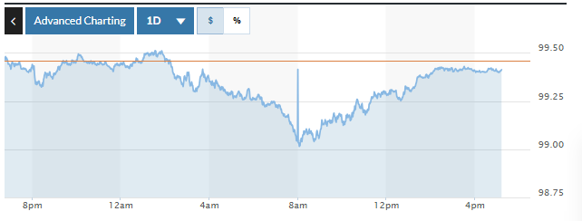 | Biểu đồ biến động Chỉ số DXY trong 24 giờ qua. Ảnh: Marketwatch |