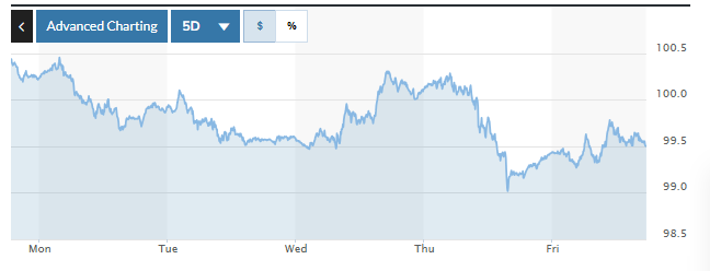Chỉ số USD Index (DXY) đo lường biến động đồng bạc xanh với 6 đồng tiền chủ chốt đứng ở mức 99,5.