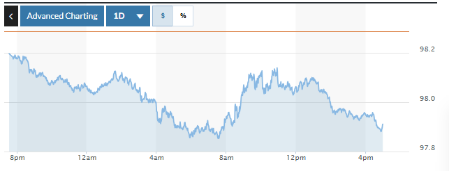 | Biểu đồ biến động Chỉ số DXY trong 24 giờ qua. Ảnh: Marketwatch |