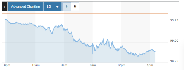 | Biểu đồ biến động Chỉ số DXY trong 24 giờ qua. Ảnh: Marketwatch |
