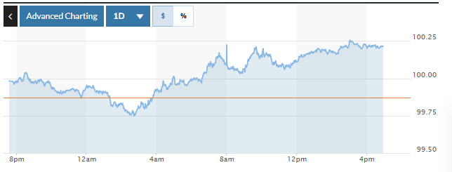 | Biểu đồ biến động Chỉ số DXY trong 24 giờ qua. Ảnh: Marketwatch |