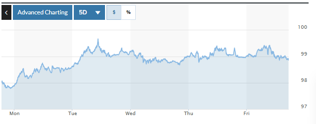 | Biểu đồ biến động Chỉ số DXY trong tuần qua. Ảnh: Marketwatch |