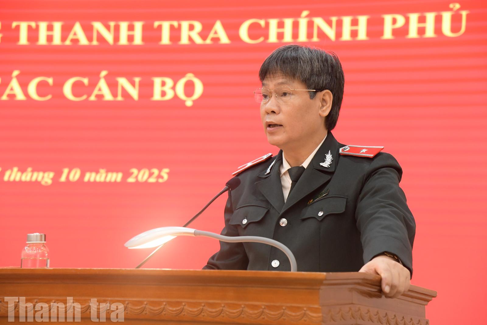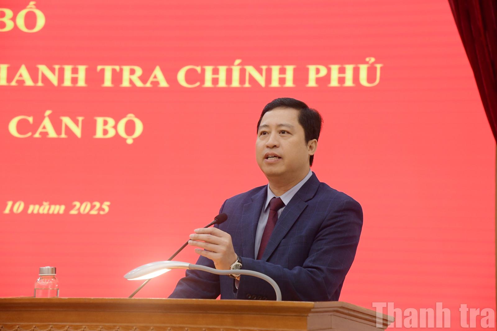 Phó Tổng Thanh tra Chính phủ Dương Quốc Huy phát biểu giao nhiệm vụ tại lễ công bố quyết định về công tác cán bộ. Ảnh: HT