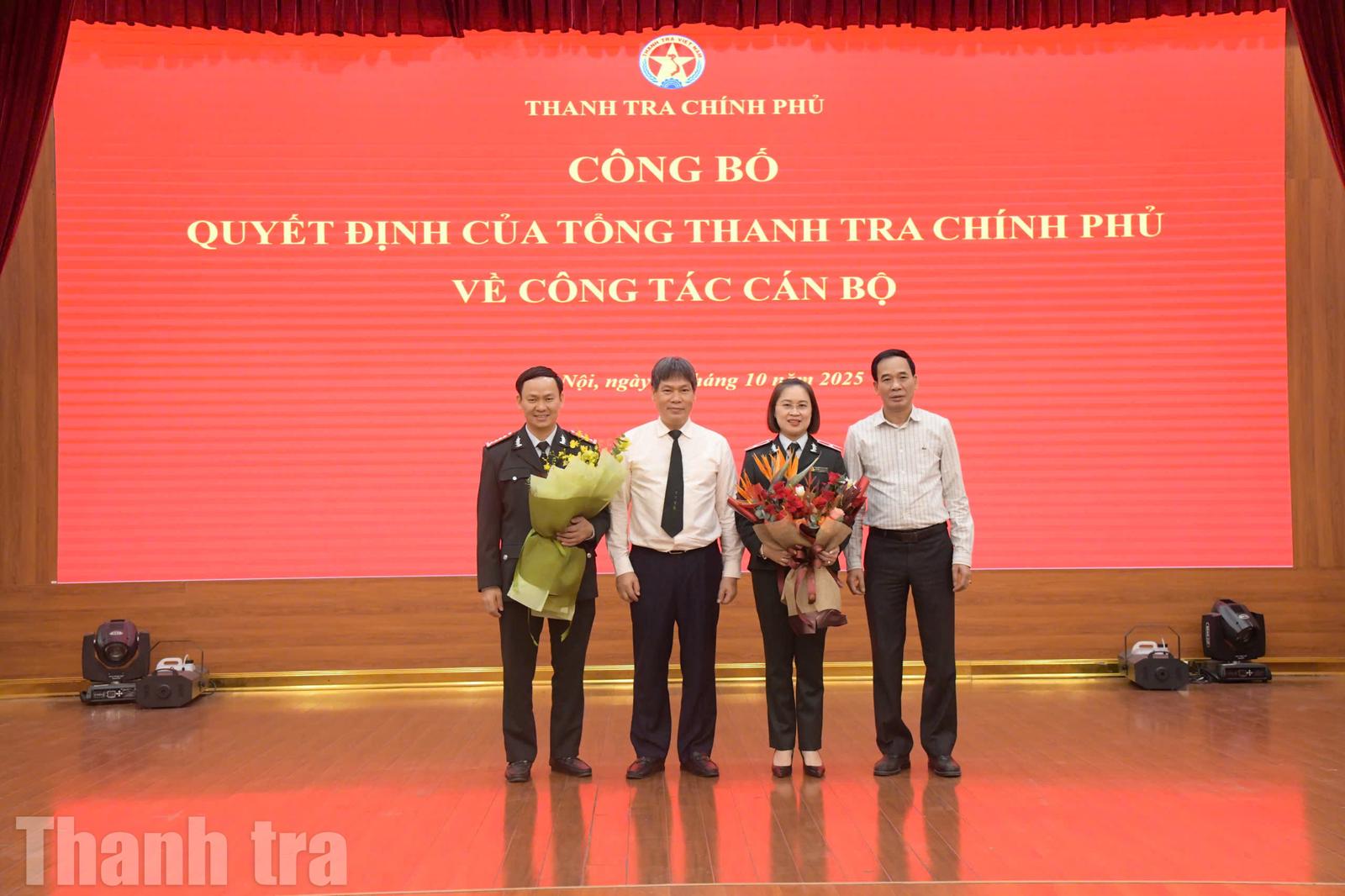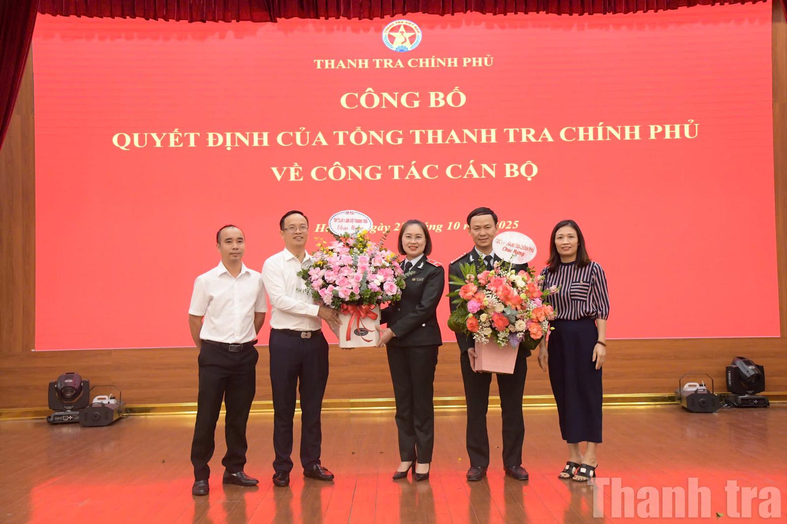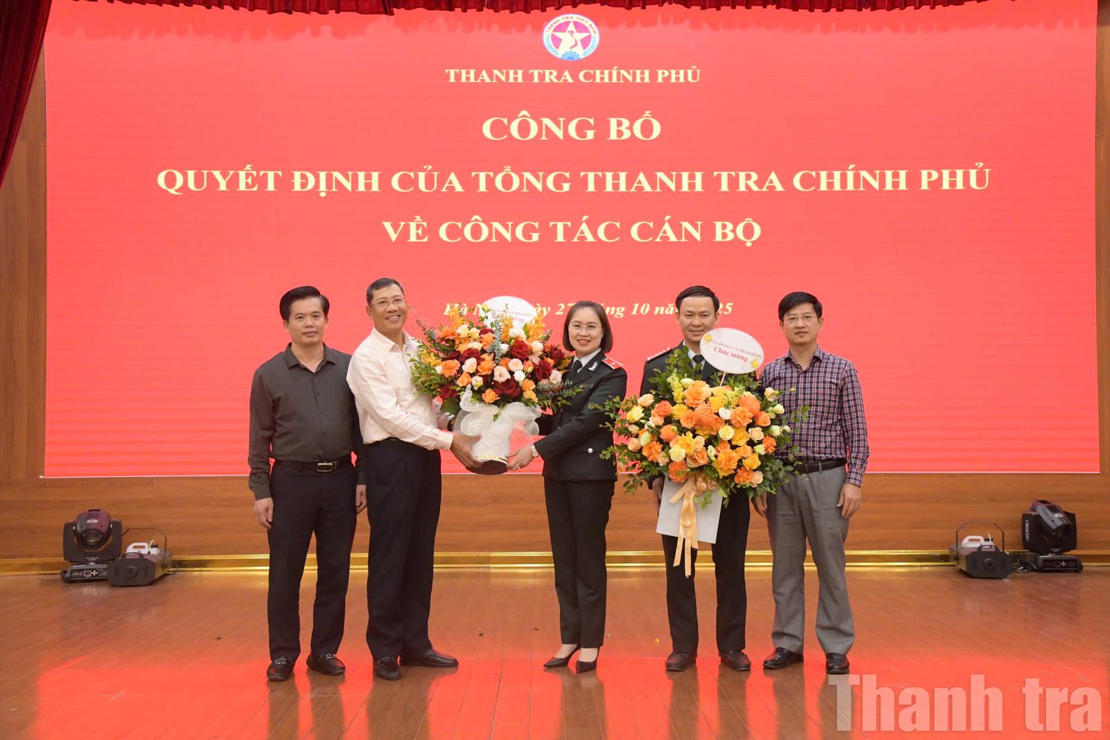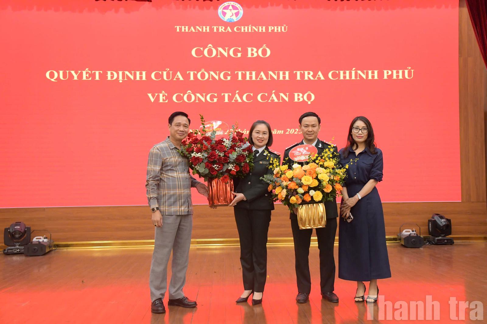 “Đồng chí Nguyễn Thị Thu Huyền và đồng chí Trần Văn Long đều là những cán bộ được đào tạo bài bản, có năng lực, giỏi về chuyên môn, thời gian qua luôn hoàn thành xuất sắc nhiệm vụ được giao, được Ban Thường vụ Đảng ủy, lãnh đạo Thanh tra Chính phủ tin tưởng ghi nhận, bổ nhiệm, điều động giữ các chức danh quan trọng”, Phó Tổng Thanh tra Dương Quốc Huy cho biết.