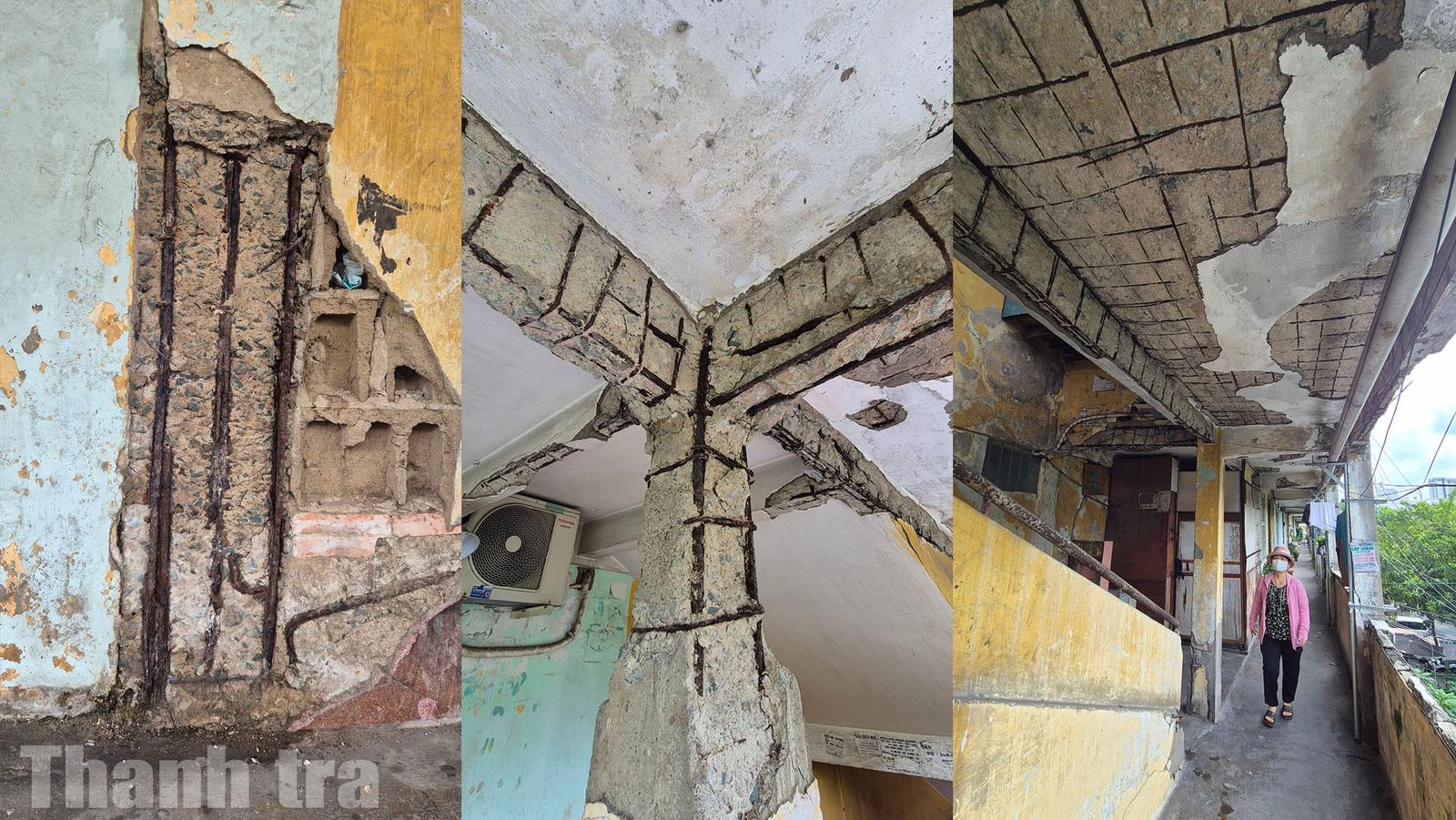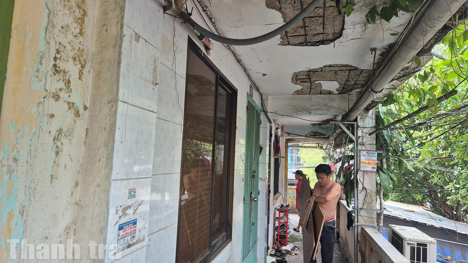 “Các mảng bê tông mục thường xuyên rơi xuống, nhất là khi trời mưa. Chúng tôi không biết sao giờ, việc di dời dựa vào Nhà nước thôi”, ông Quang, cư dân tại lô B, chung cư Phạm Thế Hiển chia sẻ.