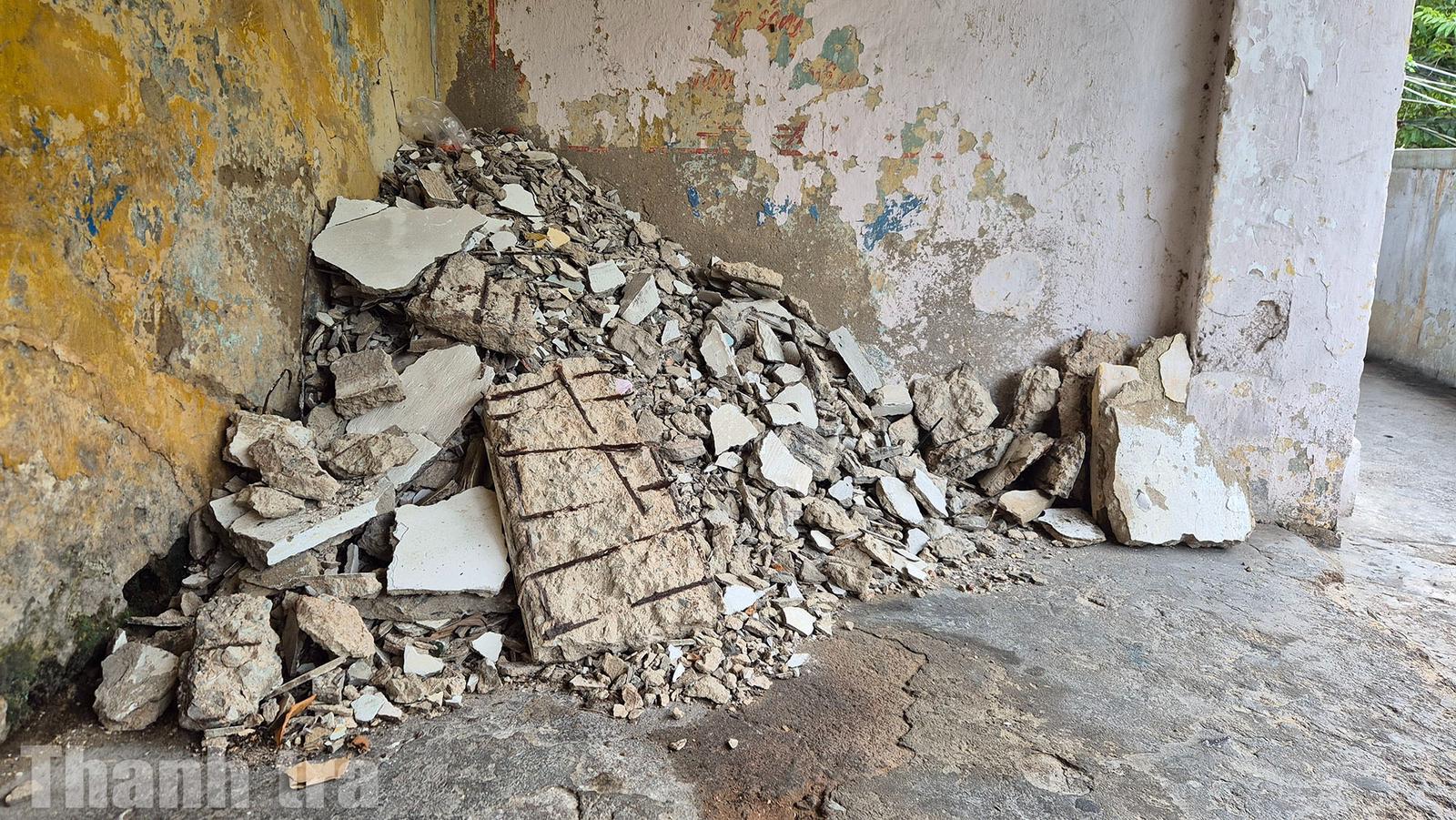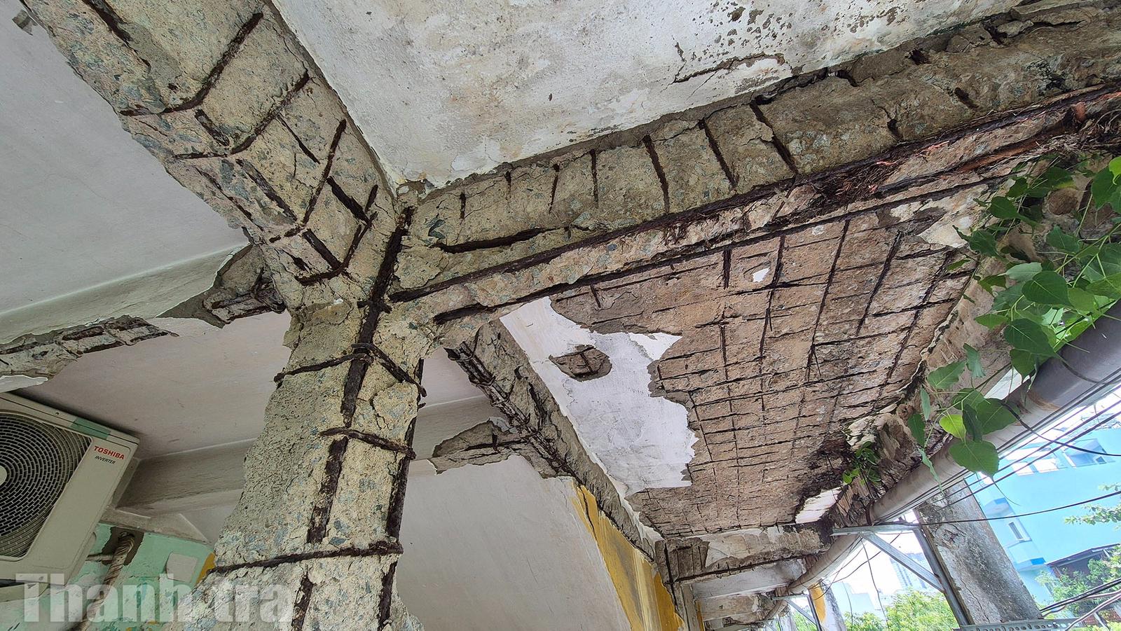 Nhiều hạng mục tại lô B và C xuống cấp nghiêm trọng, bê tông bong tróc, rơi vỡ để lộ khung sắt rỉ sét. Ảnh: Cảnh Nhật
