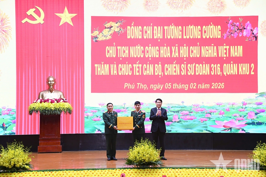 | Chủ tịch nước Lương Cường thăm, chúc Tết Sư đoàn 316. |