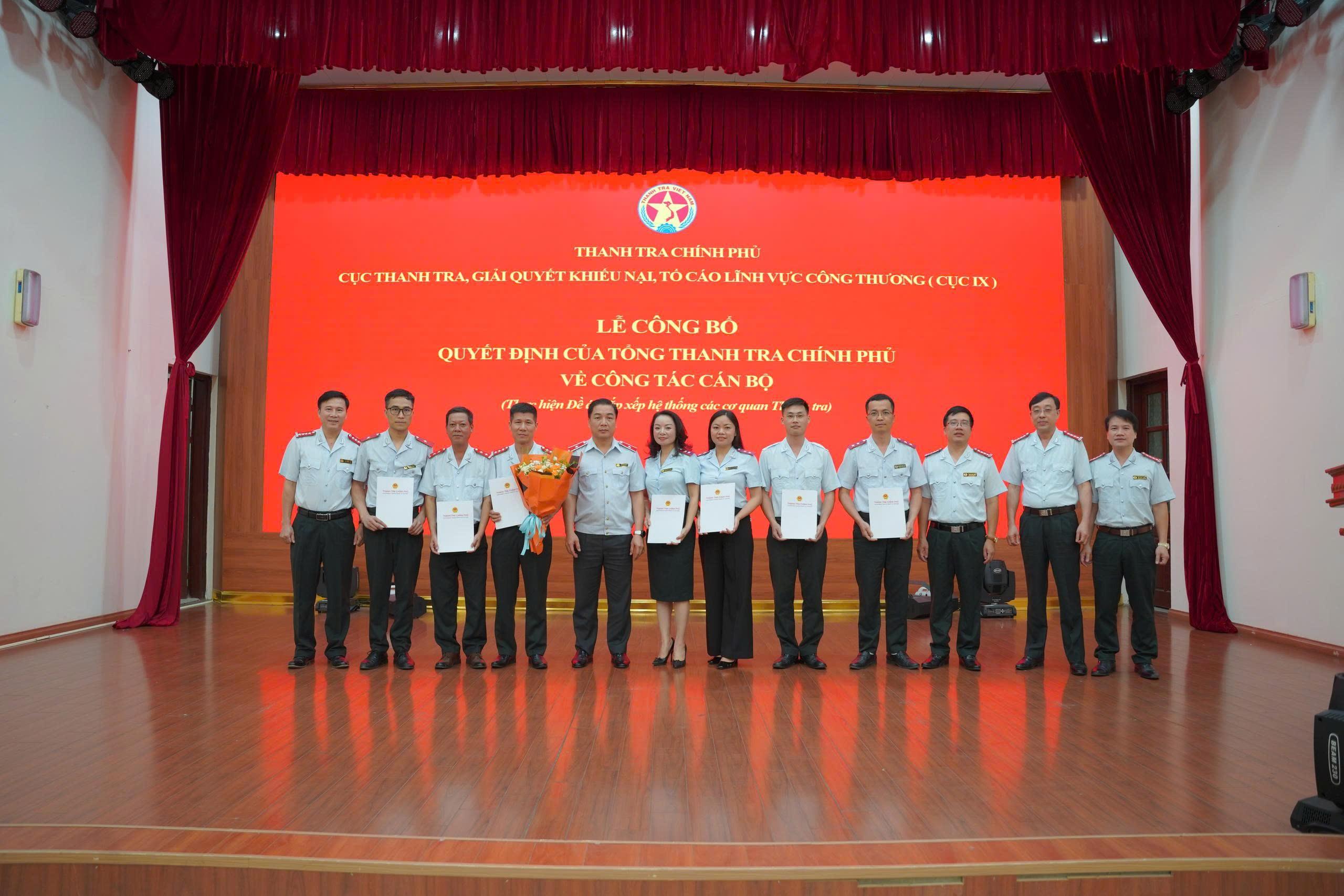 Chiều 10/6, Cục Thanh tra, giải quyết khiếu nại, tố cáo lĩnh vực công thương (Cục IX) - Thanh tra Chính phủ đã tổ chức lễ công bố các quyết định của Tổng Thanh tra Chính phủ về công tác tổ chức cán bộ.