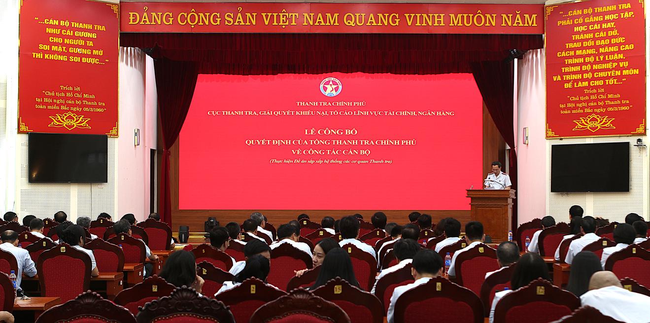 Ngày 7/6/2025, Cục Thanh tra, giải quyết khiếu nại, tố cáo lĩnh vực tài chính, ngân hàng (Cục VI) Thanh tra Chính phủ tổ chức lễ công bố quyết định của Tổng Thanh tra Chính phủ về công tác cán bộ.