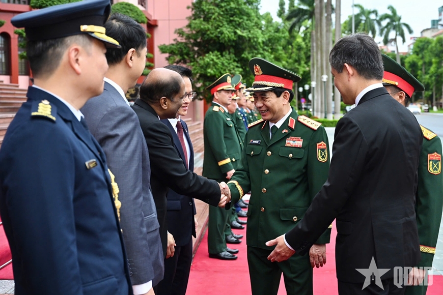 Đại tướng Phan Văn Giang chủ trì lễ đón ngài Chan Chun Sing. Ảnh: VIỆT TRUNG |