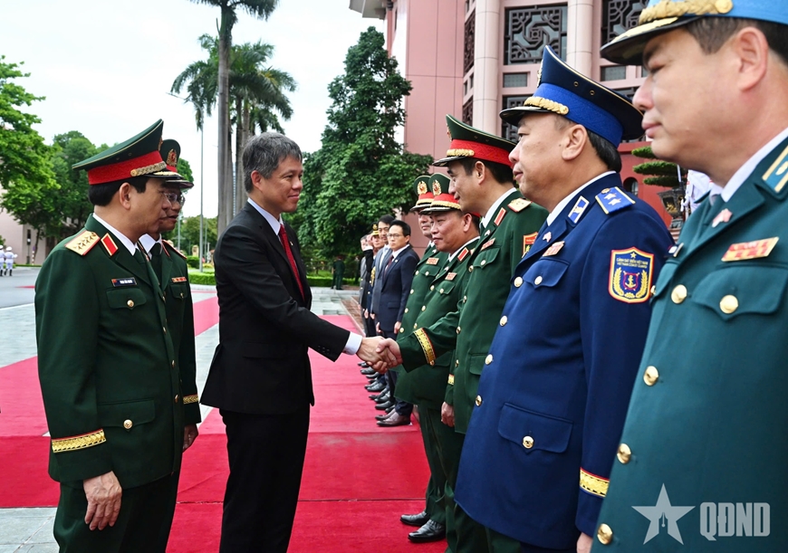 | Đại tướng Phan Văn Giang chủ trì lễ đón ngài Chan Chun Sing. Ảnh: VIỆT TRUNG |