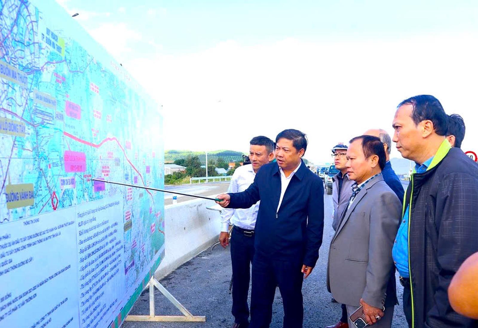 Bí thư Tỉnh ủy Đắk Lắk Lương Nguyễn Minh Triết trong lần kiểm tra thực địa, chỉ đạo tháo gỡ các vướng mắc về mặt bằng và vật liệu. Ảnh: HT