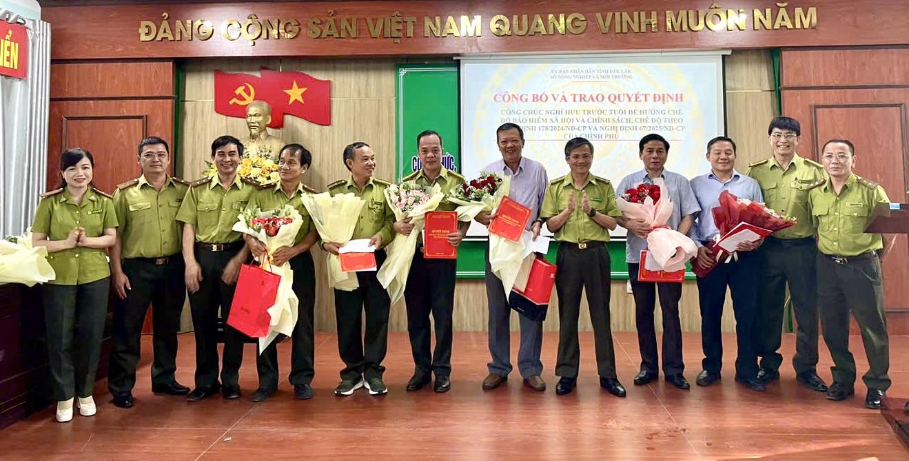 Sở Nông nghiệp và Môi trường công bố quyết định nghỉ hưu cho 7 đồng chí. Ảnh: CCKL