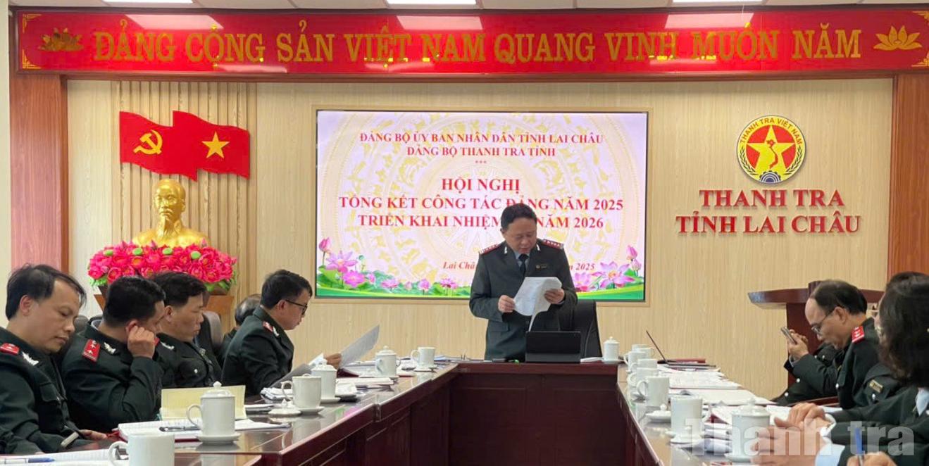 Quang cảnh Hội nghị tổng kết công tác Đảng năm 2025, triển khai nhiệm vụ năm 2026 của Đảng ủy Thanh tra tỉnh Lai Châu. Ảnh: Bùi Bình