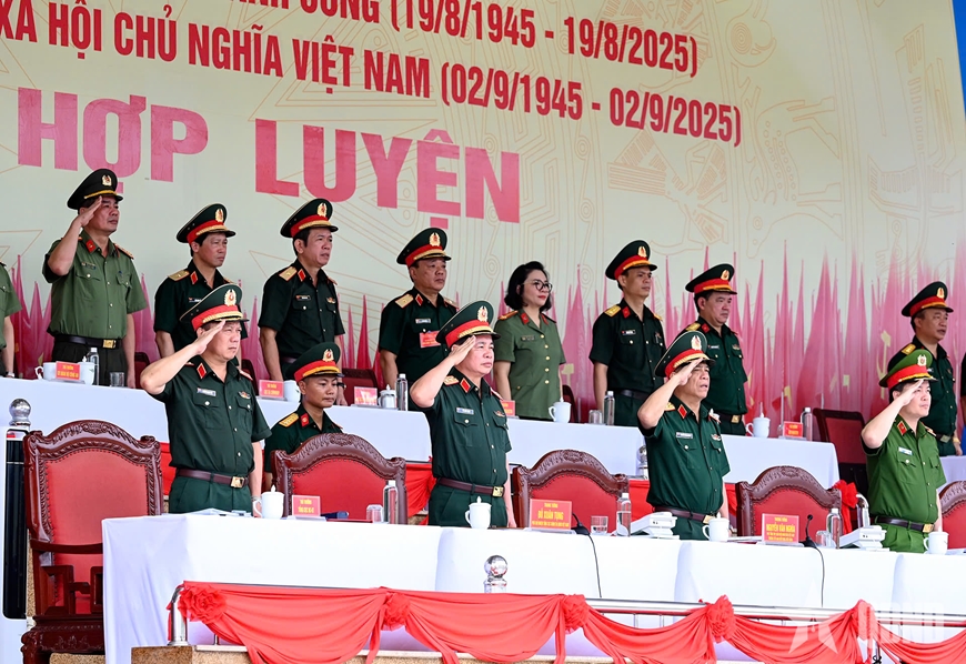 Dự, kiểm tra buổi hợp luyện có Trung tướng Đỗ Xuân Tụng, Phó chủ nhiệm Tổng cục Chính trị Quân đội nhân dân Việt Nam; lãnh đạo, chỉ huy các cơ quan, đơn vị thuộc Bộ Quốc phòng, Bộ Công an.
