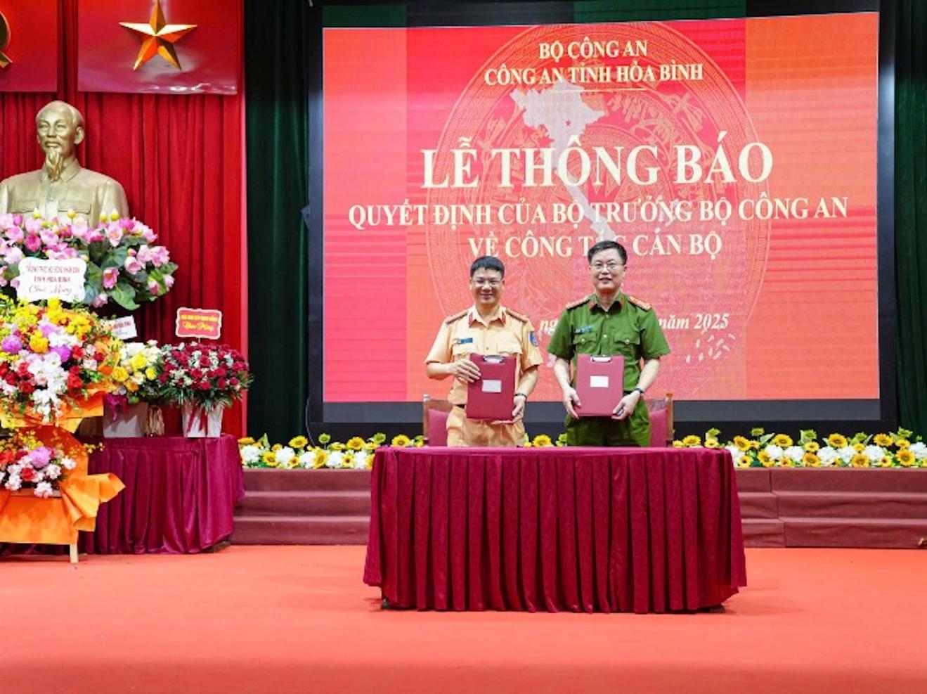 Chiều 12/6, Công an tỉnh Hòa Bình đã tổ chức lễ công bố các quyết định của Bộ trưởng Bộ Công an về công tác cán bộ.