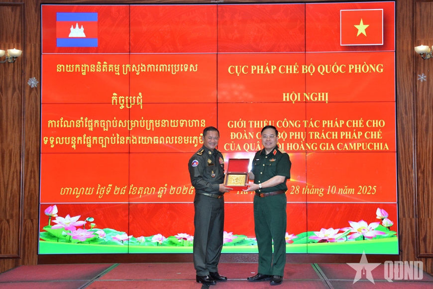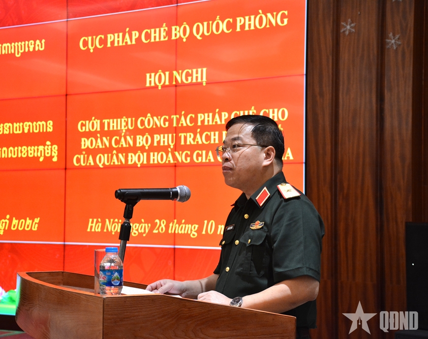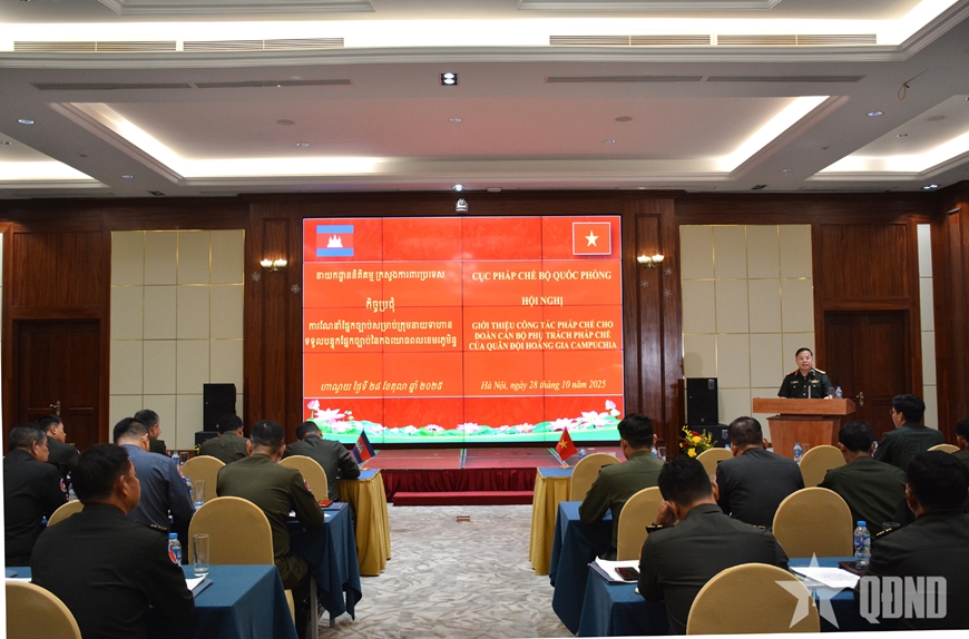 Ngày 28-10, Cục Pháp chế, Bộ Quốc phòng tổ chức Hội nghị giới thiệu công tác pháp chế cho đoàn cán bộ phụ trách pháp chế của Quân đội Hoàng gia Campuchia.