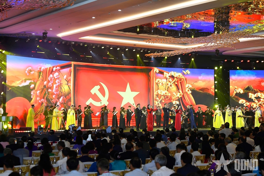 Không gian khai mạc được mở ra bằng hòa tấu “Âm vang non sông” – Hoàng Anh Minh do Dàn nhạc Giao hưởng Nhà hát Nhạc Vũ kịch Việt Nam và Nhóm Thanh Âm Xanh trình diễn. Liên khúc “Đảng đã cho ta một mùa xuân – Việt Nam ơi, mùa xuân đến rồi” và ca khúc “Tổ quốc ta cờ bay” tiếp nối, mang lại cảm xúc thiêng liêng, khắc họa khí phách dân tộc và niềm tin sắt son vào tương lai.