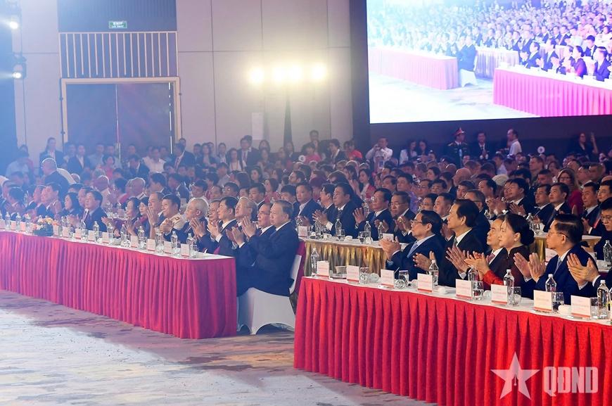Ngay từ sáng sớm, hàng nghìn đại biểu, khách mời từ khắp các tỉnh, thành phố cùng bạn bè quốc tế đã có mặt tại Trung tâm Triển lãm Quốc gia, một công trình điểm nhấn mới của Thủ đô Hà Nội, với kiến trúc nổi bật, mang đậm bản sắc văn hóa Việt Nam, nằm trong Top 10 trung tâm triển lãm lớn nhất thế giới, kiến trúc Nhà Triển lãm lấy từ hình tượng Rùa vàng Kim Quy, làm nổi bật thông điệp bảo tồn ký ức lịch sử, tôn vinh bản lĩnh và trí tuệ Việt Nam, chủ động hội nhập quốc tế sâu rộng, từng bước hiện thực hóa khát vọng hùng cường.