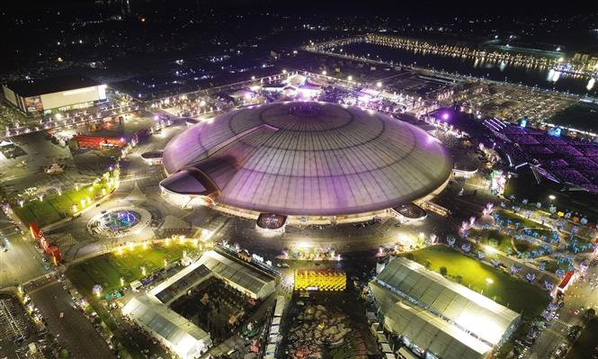 Trung tâm Triển lãm quốc gia sẵn sàng cho khai mạc Triển lãm “80 năm Hành trình Độc lập - Tự do - Hạnh phúc”. Ảnh: Quốc Khánh/TTXVN