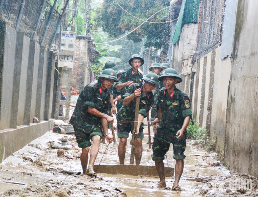 Trực tiếp chỉ huy bộ đội giúp dân, Đại tá Trần Mạnh Quân, Phó sư đoàn trưởng Sư đoàn 324 cho biết: "Đơn vị đã phối hợp chặt chẽ với chính quyền địa phương, chia nhỏ lực lượng thành nhiều tổ, nhóm, vào từng con đường, đến từng gia đình hỗ trợ người dân vệ sinh, dọn dẹp sau lũ. Chúng tôi đã xây dựng quyết tâm giúp nhân dân khắc phục hậu quả bão lụt, nhanh chóng ổn định cuộc sống”.