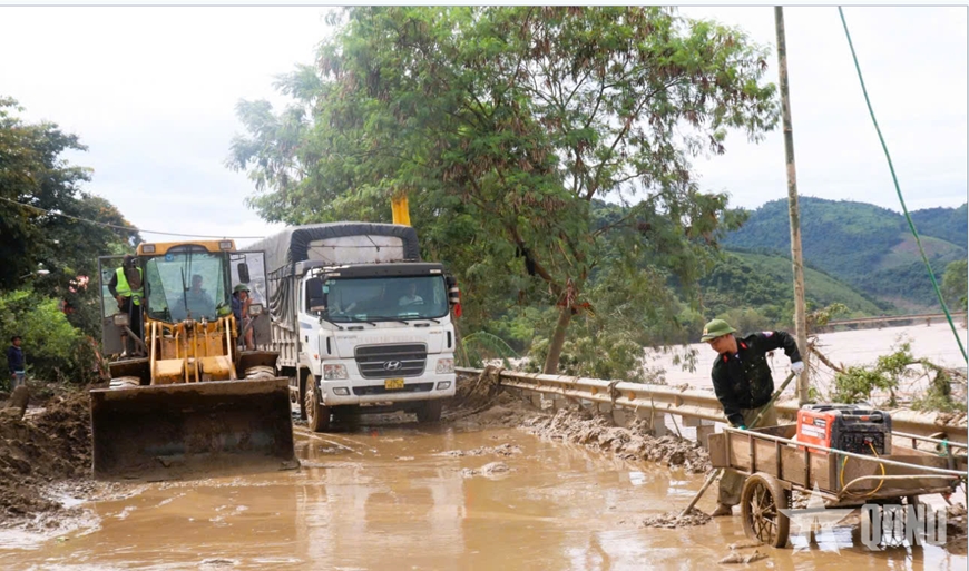 Hiện nay, tuyến giao thông huyết mạch Quốc lộ 7 nối khu vực đồng bằng với các xã vùng cao phía Tây tỉnh Nghệ An xuất hiện hàng chục điểm ngập lụt, gây chia cắt nghiêm trọng. Theo thống kê của Công ty Cổ phần 495, Sở Xây dựng tỉnh Nghệ An-đơn vị quản lý Quốc lộ 7, toàn tuyến có 24 điểm ngập sâu trong nước cùng một số vị trí bị sạt lở nghiêm trọng. Các điểm ngập lụt tập trung chủ yếu từ địa bàn xã Con Cuông lên trung tâm xã Mường Xén. Sau khi nước lũ rút, nhiều điểm của tuyến Quốc lộ 7 có lượng bùn đất đọng lại trên mặt đường rất lớn, có những đoạn dài nhiều ki-lô-mét, bùn đất phủ cao hơn 1,5m khiến mọi hoạt động giao thông bị tê liệt, gây rất nhiều khó khăn cho công tác điều động lực lượng, phương tiện, vận tải hàng hóa hỗ trợ nhân dân. Khi nước lũ rút dần, Sở Xây dựng tỉnh Nghệ An đã huy động máy móc chuyên dụng cùng nhân lực tham gia giải phóng bùn đất với quyết tâm sớm thông tuyến đường huyết mạch.
