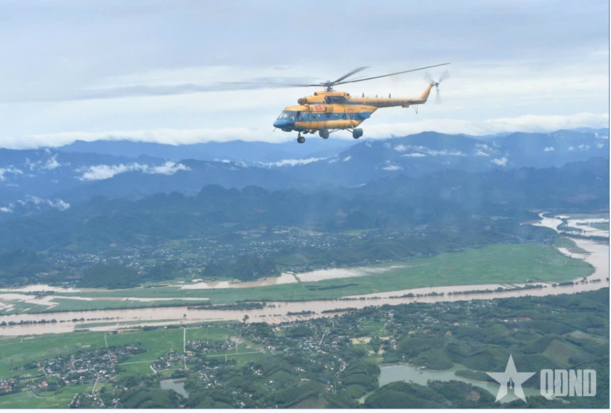 | Trực thăng của Trung đoàn 916, Sư đoàn 371, Quân chủng Phòng không - Không quân thực hiện nhiệm vụ cứu trợ tại tỉnh Nghệ An. |