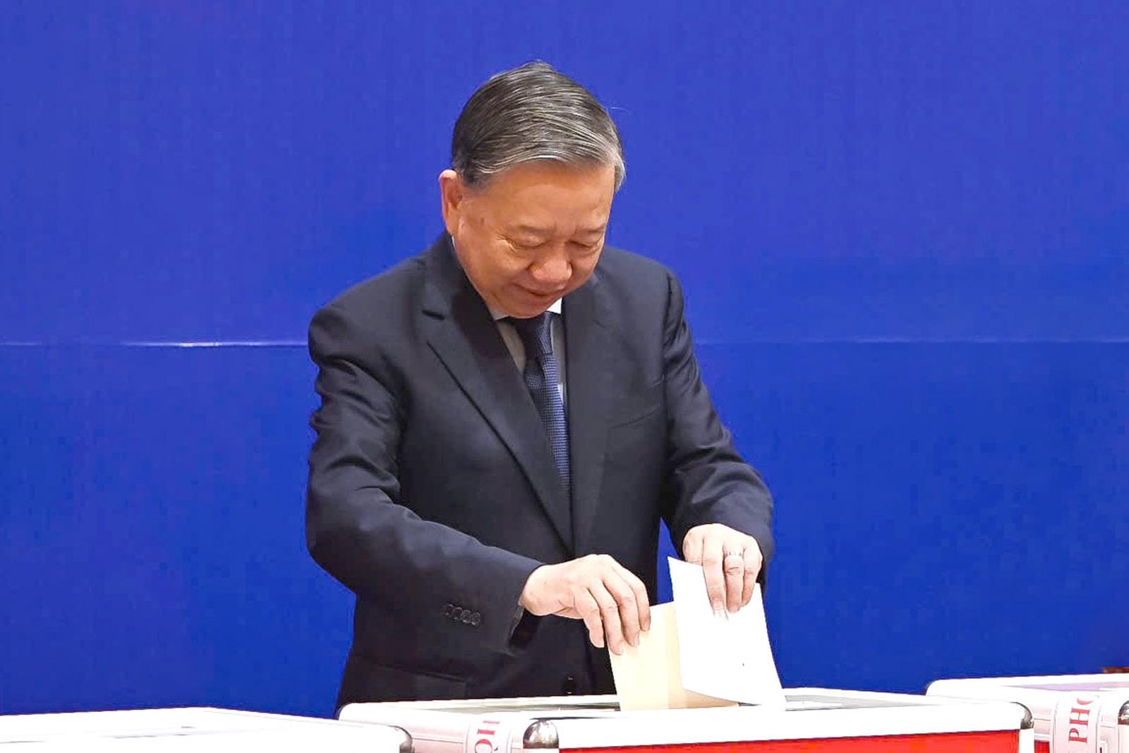 Tổng Bí thư Tô Lâm bỏ phiếu bầu cử. Ảnh: P.Thắng